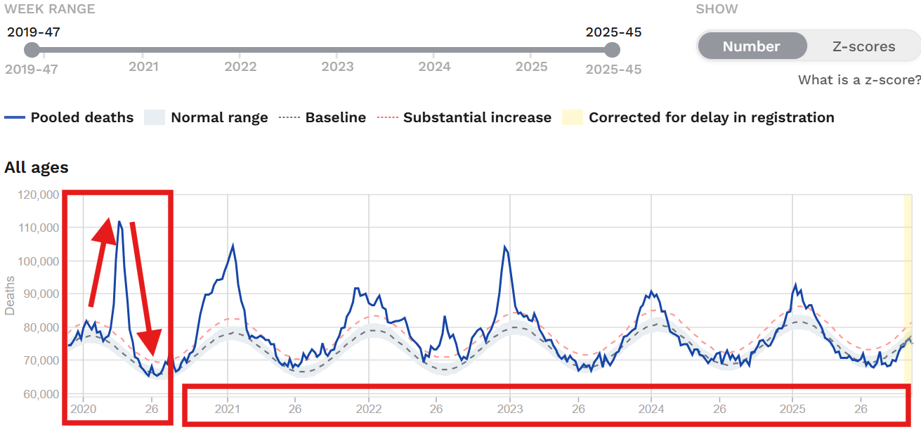 Deaths From All Causes — Spikes of Death in Europe are SEASONAL (Winter) and Cyclical - 2020 was no different